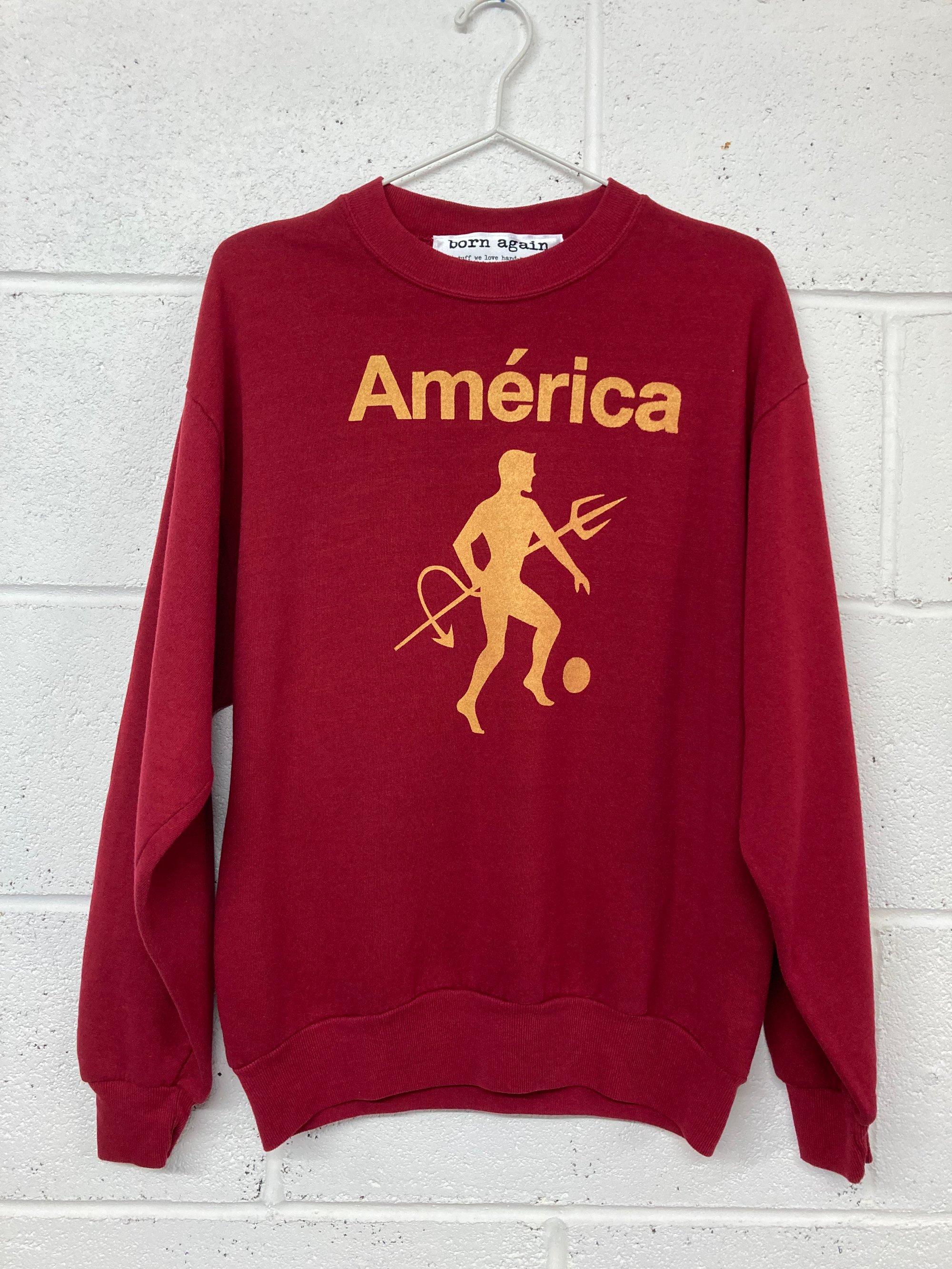 Because our sweats are vintage and preloved they may show signs of wear e.g bobbles/small marks. We have tried our best to highlight anything obvious in the photos. This top has a stain on the back of a sleeve (see pic) because it's had such a fun previous life so it's a bit cheaper.