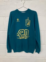 Hand screen printed on a green preloved vintage sweat with gold eco ink.