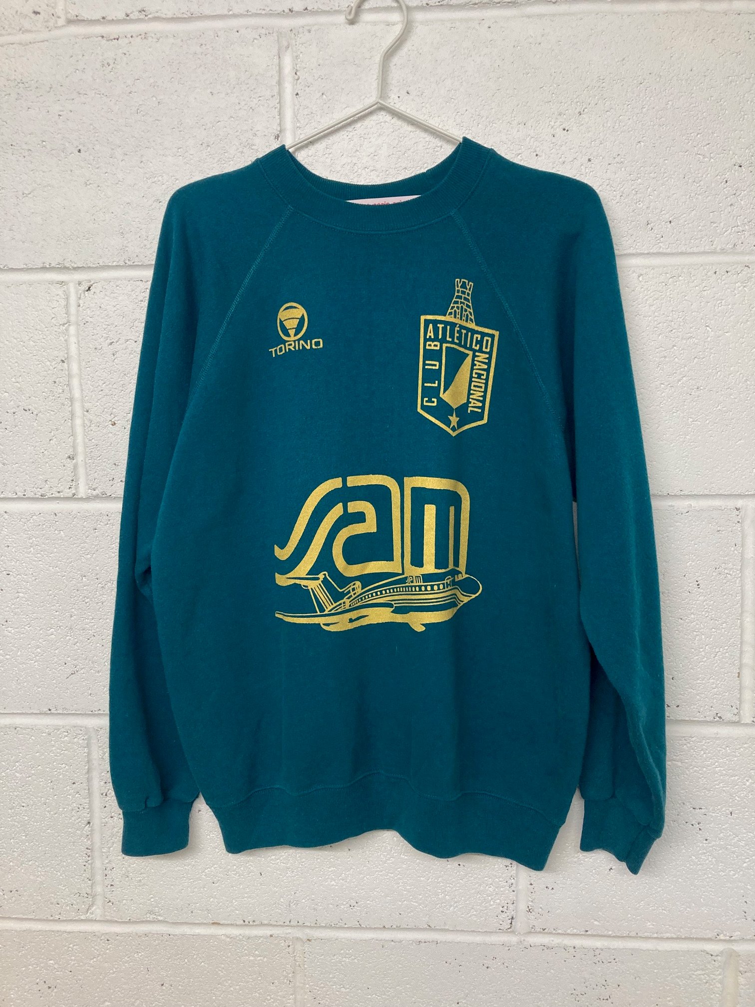 I have a brill book called The Beautiful Game by Chris Taylor. He travels across South America experiencing the different football cultures and explaining the development of the game in each country. It’s full of amazing and mad stories. There is a really interesting chapter of football in Colombia. It details how in the 1980s different drug cartels bought into major football clubs. The heads of the cartels loved football but also found it a great way to launder money and spend money with the aim of making Colombian teams more competitive in the Copa Libertadores. Pablo Escobar who headed the Medellin cartel and was a mad football fan bankrolled his own team Atletico Nacional. His dream was achieved in 1989 when Atletico Nacional beat Paraguay’s Olimpia on penalties to win Colombia’s first ever Copa Libertadores. I saw a picture of the team wearing a shirt from the following season with a great airline sponsor so I printed some.
