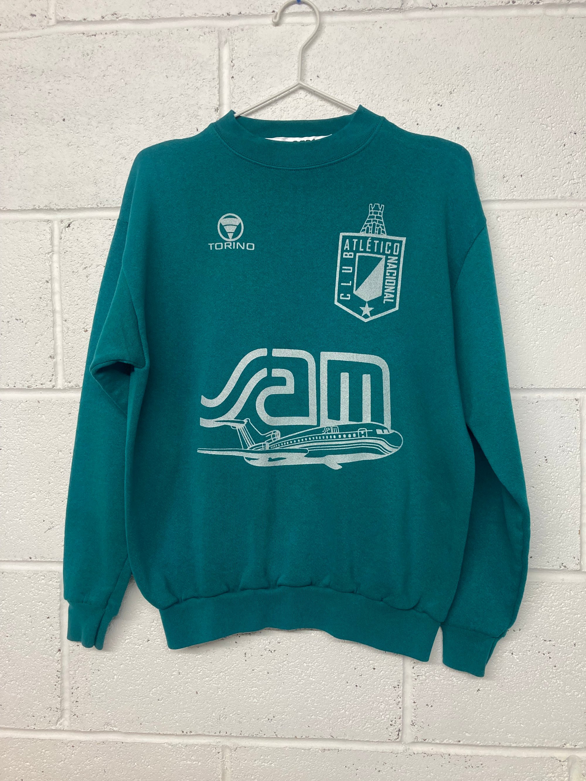 I have a brill book called The Beautiful Game by Chris Taylor. He travels across South America experiencing the different football cultures and explaining the development of the game in each country. It’s full of amazing and mad stories. There is a really interesting chapter of football in Colombia. It details how in the 1980s different drug cartels bought into major football clubs. The heads of the cartels loved football but also found it a great way to launder money and spend money with the aim of making Colombian teams more competitive in the Copa Libertadores. Pablo Escobar who headed the Medellin cartel and was a mad football fan bankrolled his own team Atletico Nacional. His dream was achieved in 1989 when Atletico Nacional beat Paraguay’s Olimpia on penalties to win Colombia’s first ever Copa Libertadores. I saw a picture of the team wearing a shirt from the following season with a great airline sponsor so I printed some.