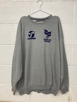 Hand screen printed on a grey preloved vintage sweat with blue eco ink.