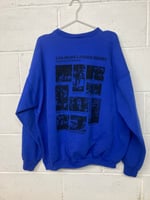 Hand screen printed on a blue preloved vintage sweat with black eco ink front and back.