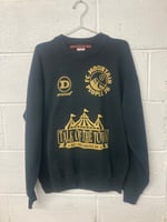 Hand screen printed on a black preloved vintage sweat with gold eco ink.