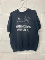 Hand screen printed on a black preloved vintage short sleeved sweat with silver eco ink.