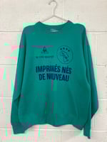 Hand screen printed on a green preloved vintage sweat with blue eco ink.