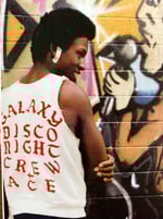 Inspired by the hip hop movie Wild Style from 1983 I love this print. I picked up a fab book on the making of the film and there is a picture of an amazing young dude wearing this print. Absolutely love the name of the crew and that Heated Words font. I love the early DIY fashion of early hip hop. Those flock heat sealed letters are so cool. I had a sweatshirt printed at Muse Records in Bury when I was about 12 in small copper black letters that they heat sealed on that said Here Comes Trouble. Thought I was very cool. Looked amazing with my national health gegs and Farahs.
