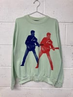 Hand screen printed on a mint preloved vintage sweat with blue and red eco ink.