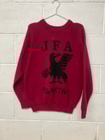 Hand screen printed on a red preloved vintage sweat with black eco ink.