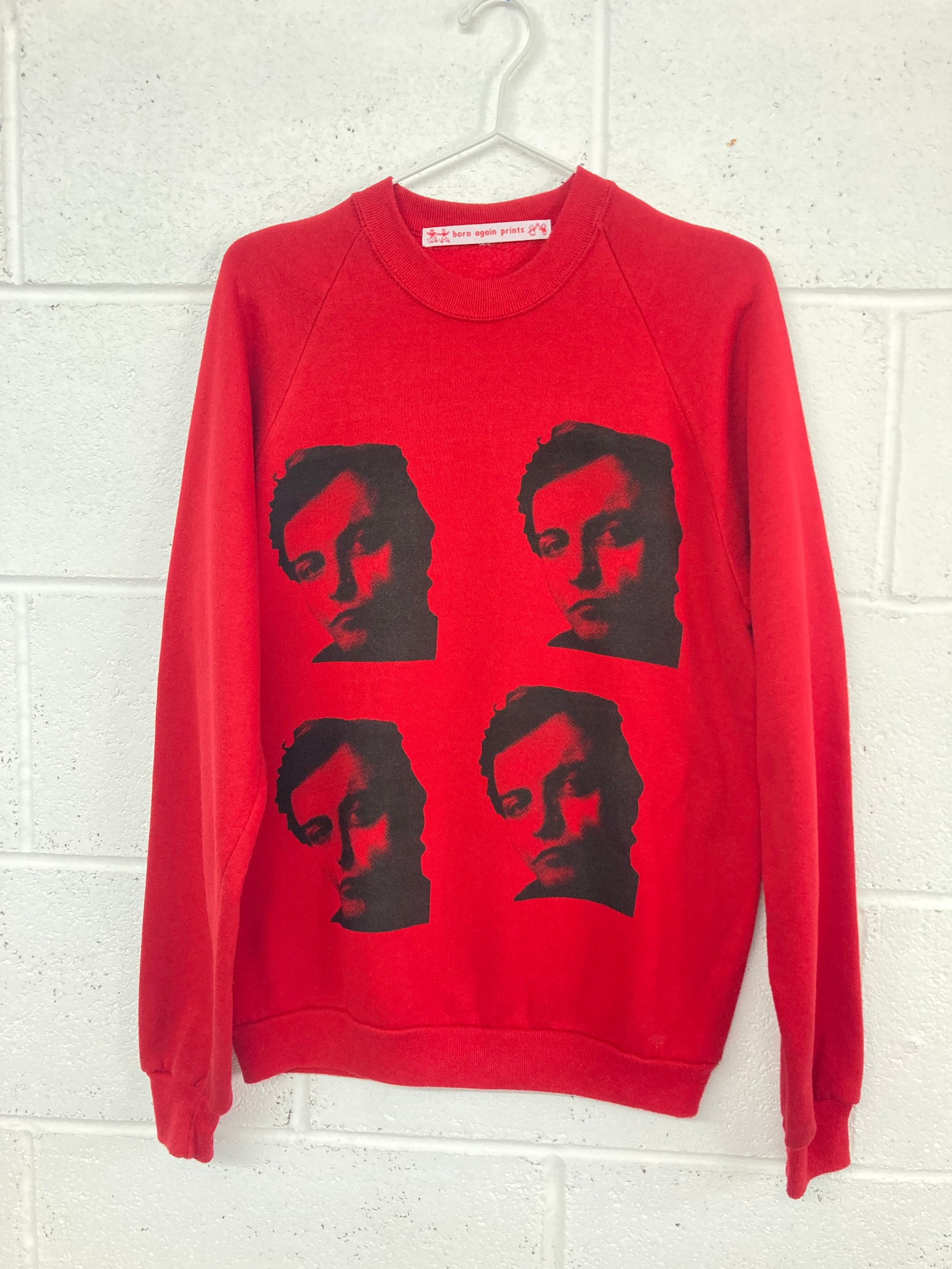 Hand screen printed on a red preloved vintage sweat with black eco ink.