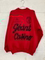 Because our sweats are vintage and preloved they may show signs of wear e.g bobbles/small marks. We have tried our best to highlight anything obvious in the photos. Not my greatest print there is some fading to the letters in Geant (see pic) so a bit cheaper.